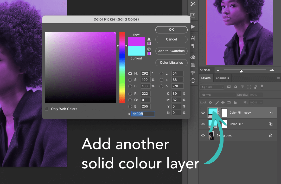 Start by creating a solid colour layer and select the first lighting colour of your choice.